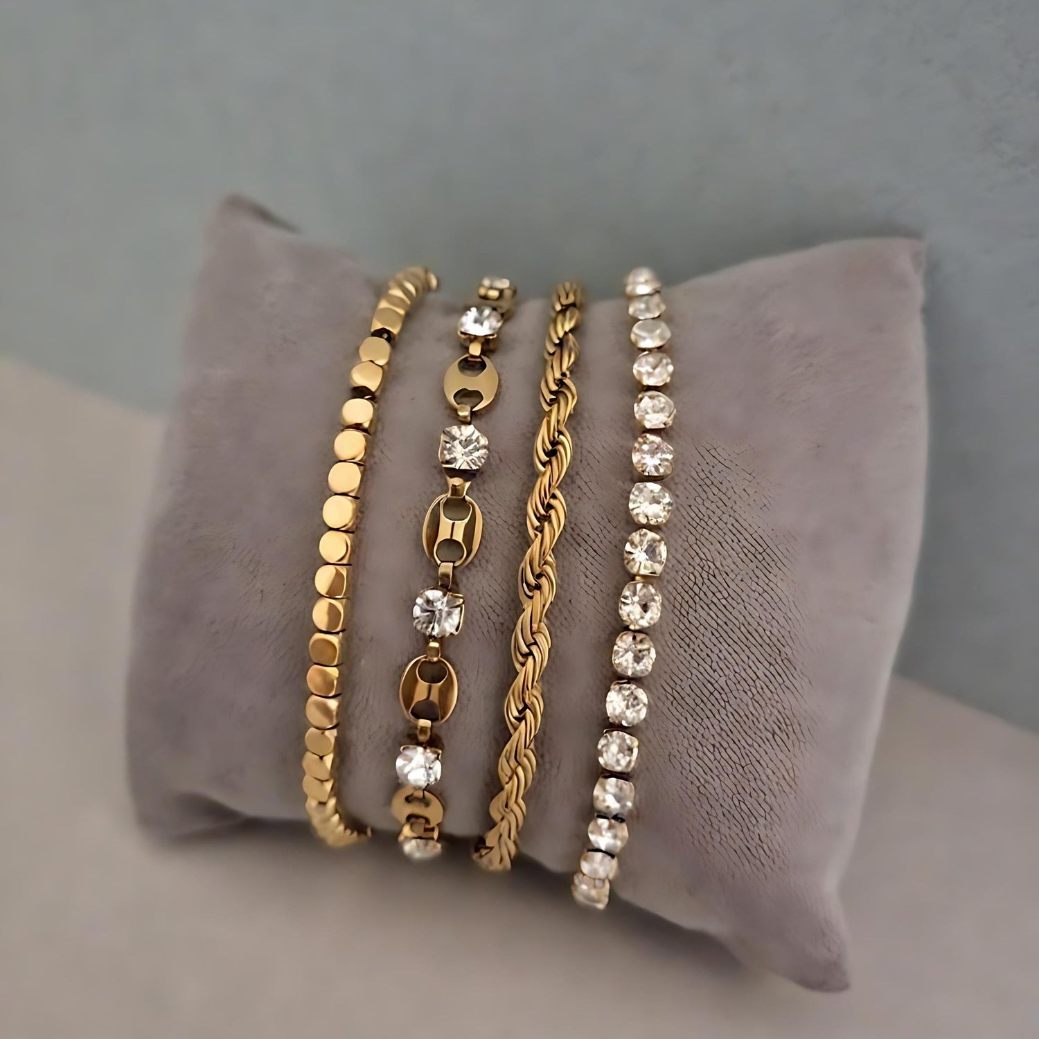 Acero bañado en oro 18k: Joyas duraderas con brillo lujoso, resistentes al uso diario y perfectas para cualquier ocasión.