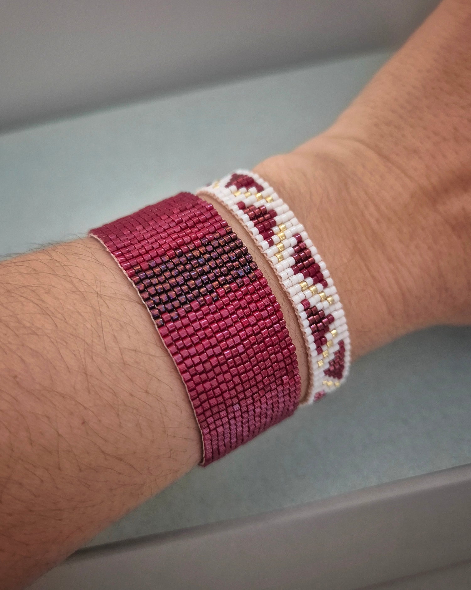 Piezas únicas, tejidas con cuentas de vidrio japonés. Llenas de color, pero siempre con estilo minimalista y elegante