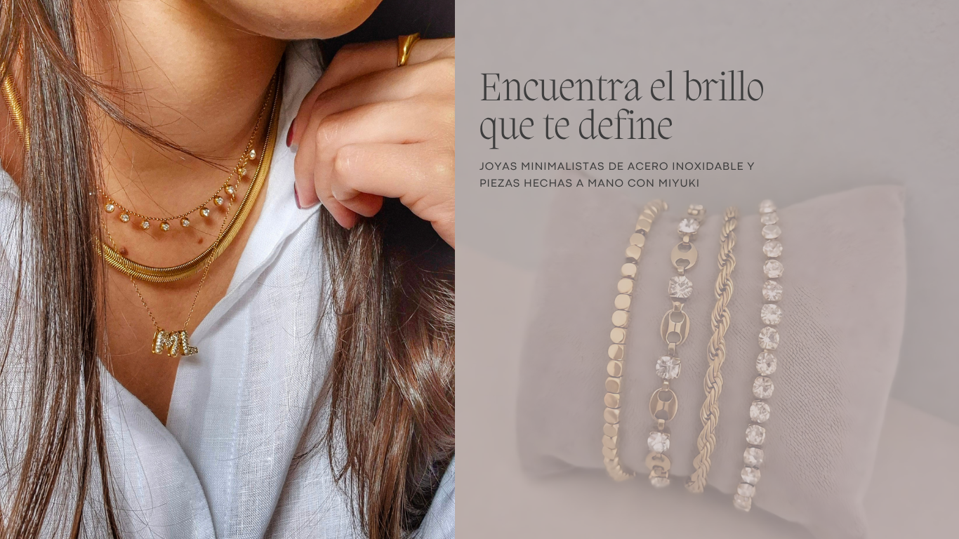 Nuestra colección combina diseños minimalistas y atemporales pensados para acompañarte cada día. Cada pieza realza tu belleza natural con elegancia y sofisticación.