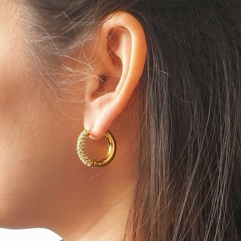 Celebra la sofisticación atemporal con la argolla Eterna Brilliance, una joya que fusiona el estilo clásico con un toque moderno. Fabricada en resistente acero inoxidable con un impecable baño de oro, está disponible en dos elegantes acabados: dorado y plateado. Su diseño minimalista se realza con pequeños diamantes incrustados en la parte delantera, aportando un brillo sutil que simboliza la belleza en los detalles. Perfecta para complementar cualquier look, esta pieza es ideal para quienes buscan elegancia discreta y durabilidad en su joyería.