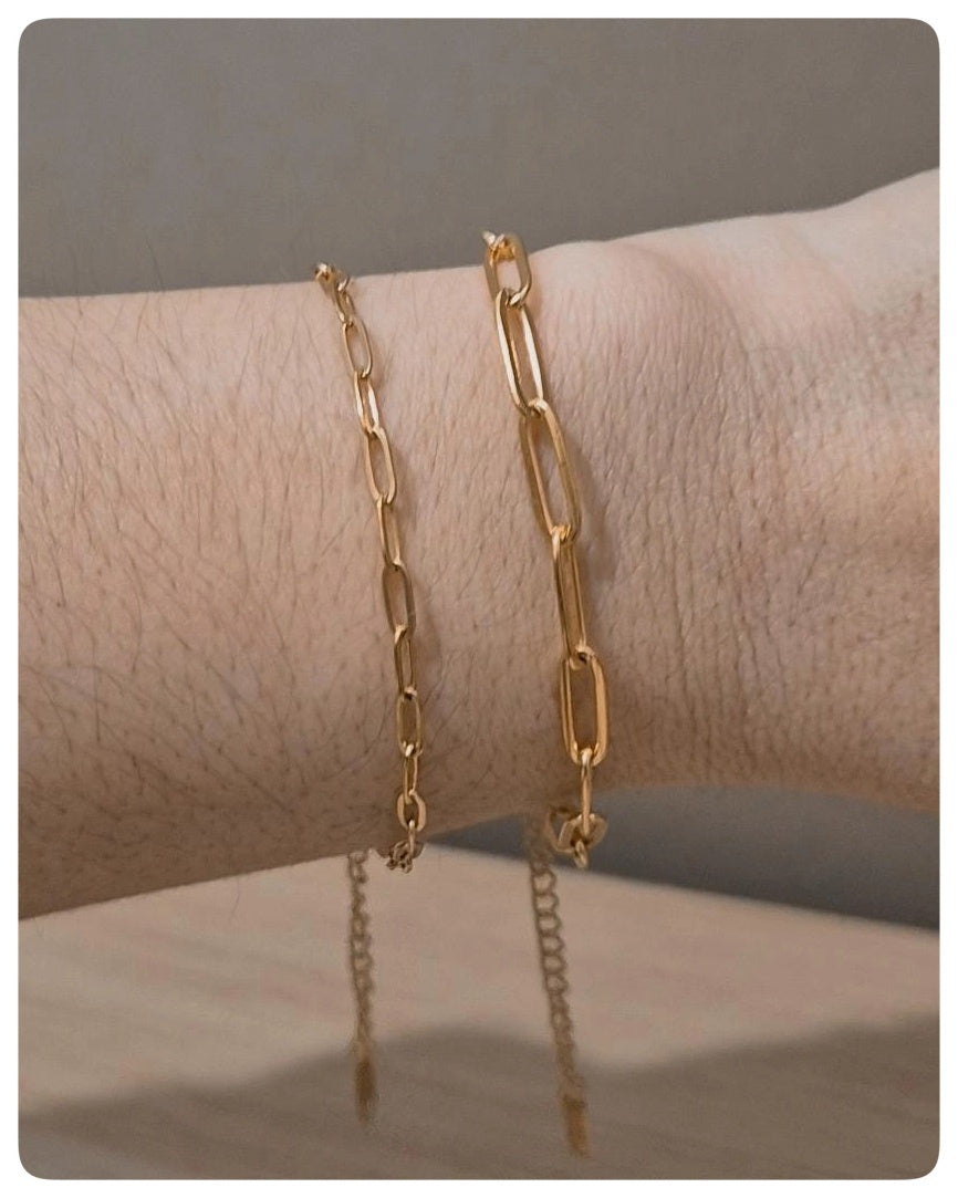 Disponemos de 2 modelos de pulseras. La diferencia viene por el tamaño de los eslabones, tal como se puede appreciate en la foto.