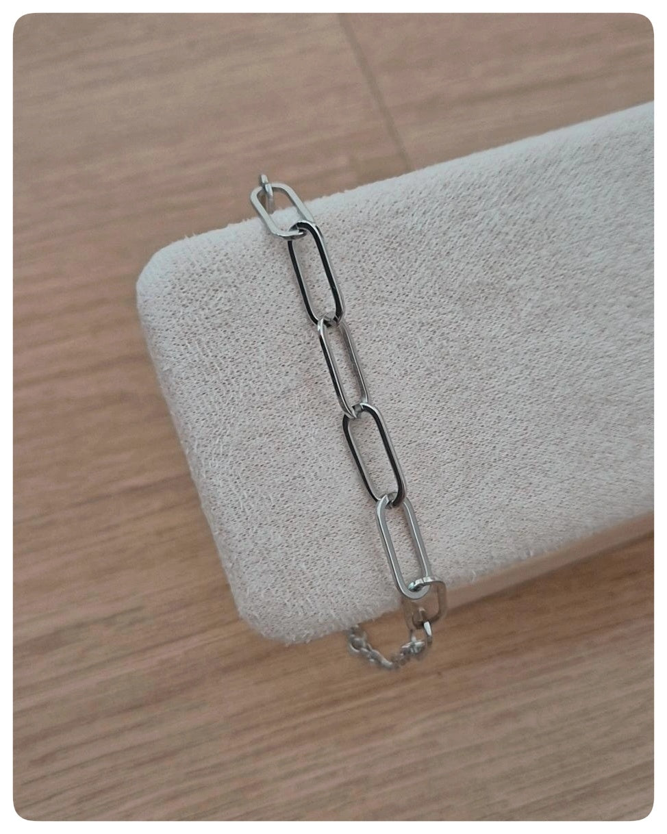 Refinada y con un toque contemporáneo, la Pulsera Link Style es una joya imprescindible. Sus eslabones largos y pulidos, disponibles en dorado o plateado, crean un diseño simple pero llamativo, perfecto para añadir elegancia a cualquier look. Ya sea que la lleves sola o en capas, esta cadena aporta un aire de sofisticación y versatilidad a cualquier estilo.