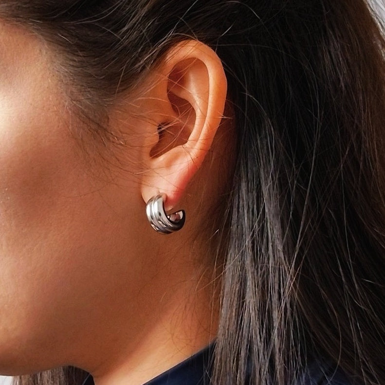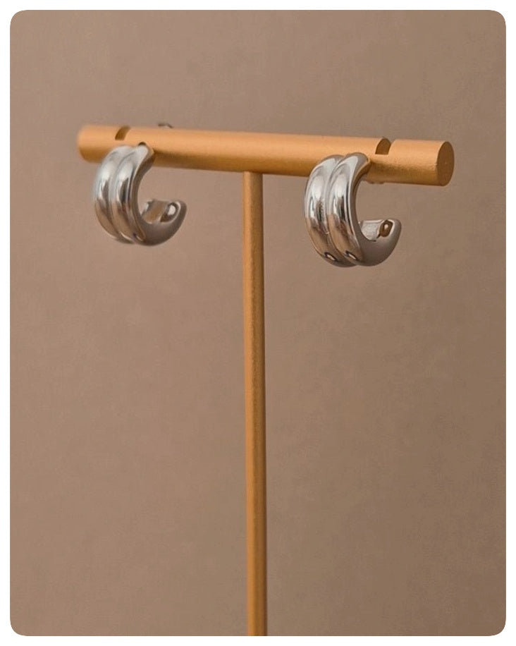 Zarcillo pequeño de acero inoxidable, elegante y moderno. Con su acabado plateado, esta pieza añade sofisticación y estilo a tu look. Perfecto para el uso diario, es cómodo, ligero y versátil, ideal para quienes buscan un toque de distinción en cada detalle.