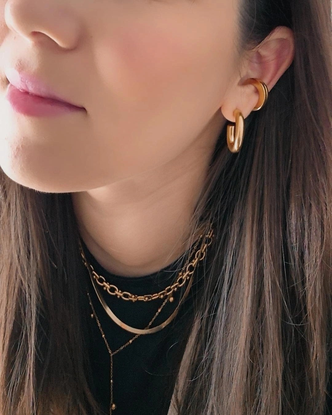 Zarcillo moderno con diseño ovalado, disponible en acabados dorado y plateado, fabricado en acero inoxidable con baño de oro. Su forma elegante y estilizada lo convierte en un accesorio versátil que se adapta a cualquier look, desde lo casual hasta lo sofisticado. Hecho en acero inoxidable, este zarcillo es ligero, duradero y perfecto para quienes buscan un toque de modernidad y sofisticación en su estilo diario.
