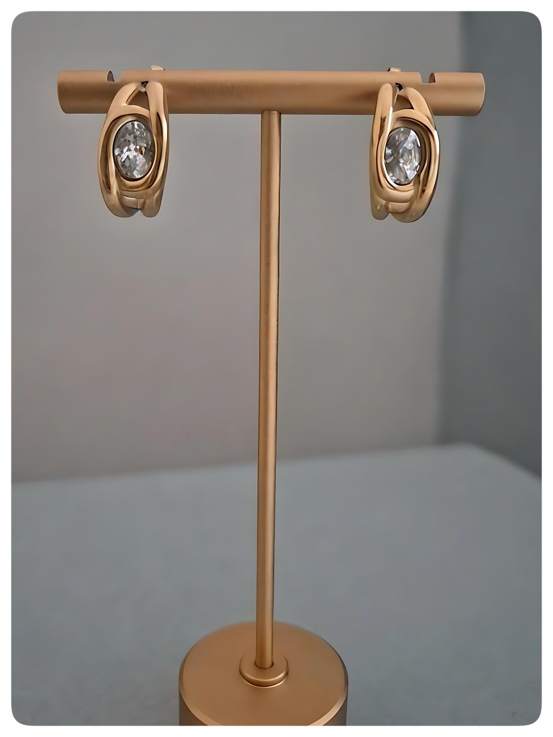 Una fusión perfecta entre arte y minimalismo. Los zarcillos Orova están elaborados en acero inoxidable con baño de oro y una circonia central tallada en forma oval, que refleja la luz con un brillo sutil y eterno. Una pieza pensada para elevar cualquier look con un toque contemporáneo y refinado.